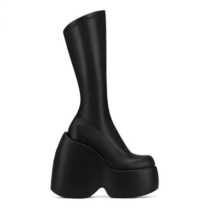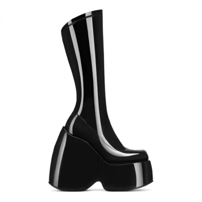 Дизайнерские Сапоги до колена из лакированной кожи на толстой платф...