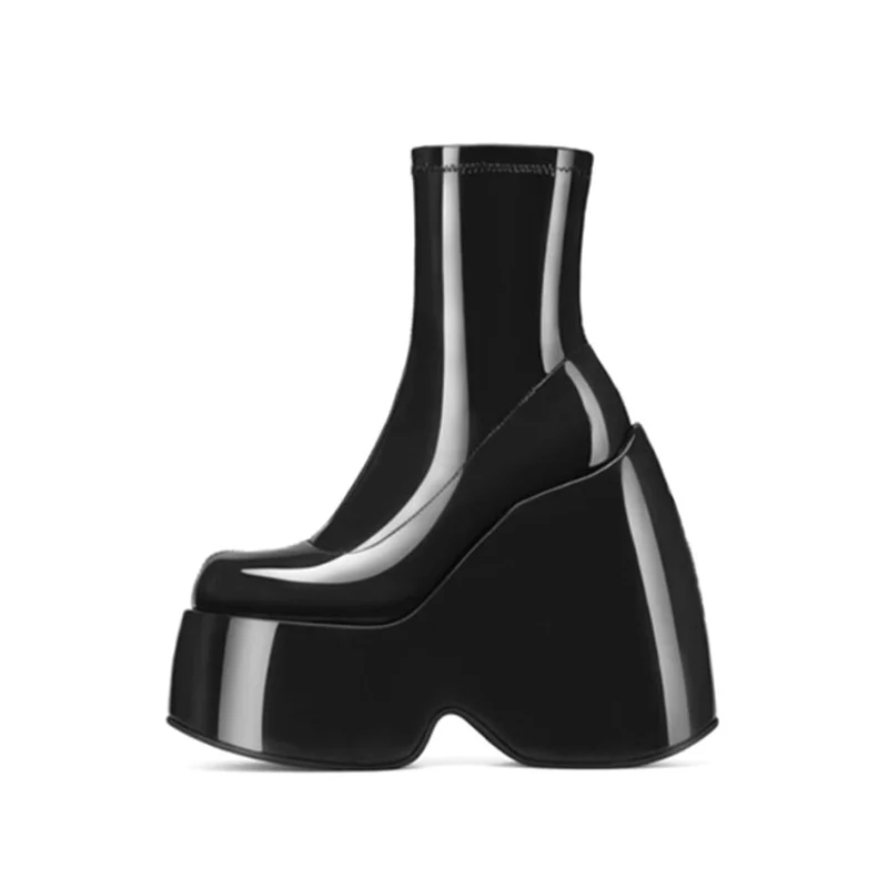 Черные лакированные кожаные дизайнерские ботильоны на толстой платф...