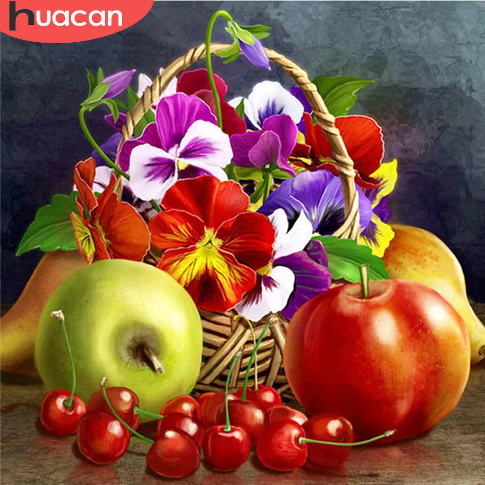 HUACAN Алмазная мозаика яблоко полная дрель квадратная Алмазная картина гранат фрукты Алмазная Цветочная мозаика вишня Рождественский подарок