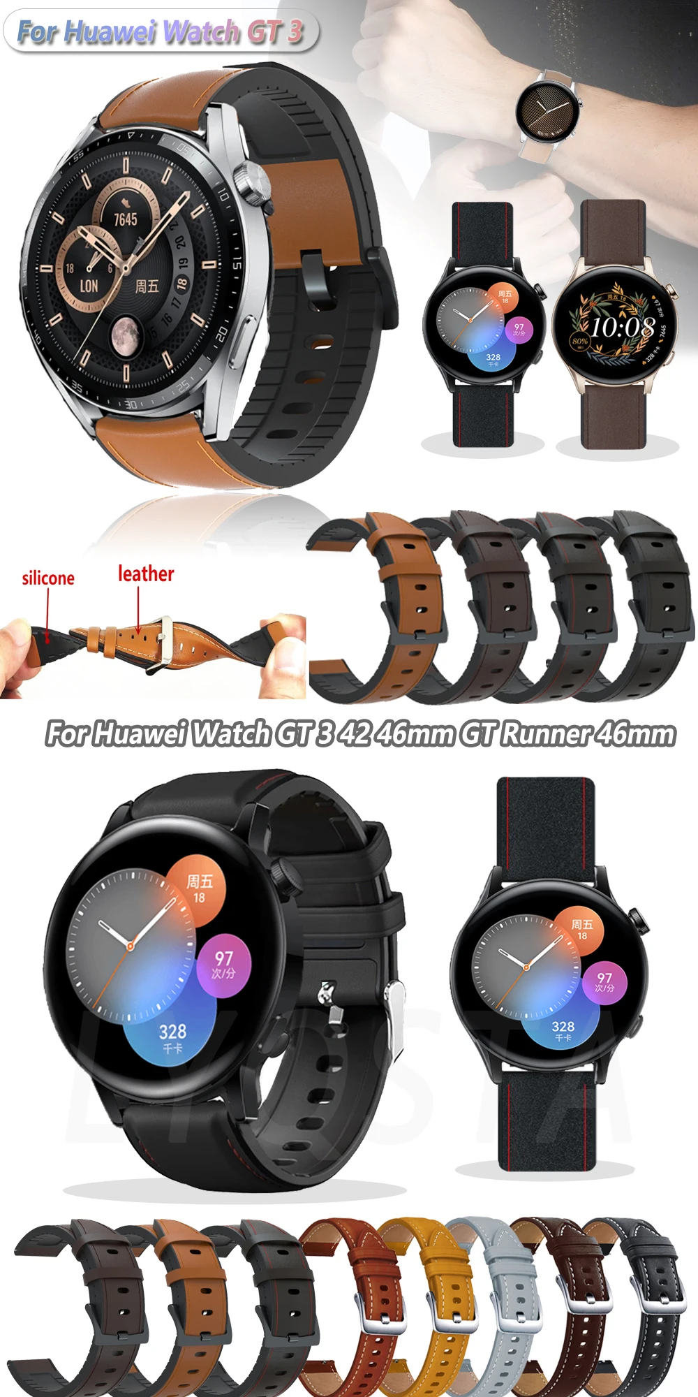 Ремешок из силиконовой кожи 20 мм 22 мм для часов Huawei GT 3/GT3 42 46 мм/GT Runner 46 мм/GT 2 GT 46 мм сменный ремешок Amazfit HUAWEI