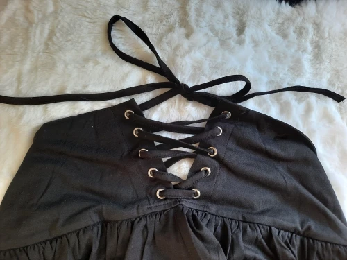 Its so cute! I got this as a freebie and didnt expect much but im shocked! it goes with alot of fits and its stretchy. I was struggling with the strings for a sec tho XD. I even got a free ring with it!