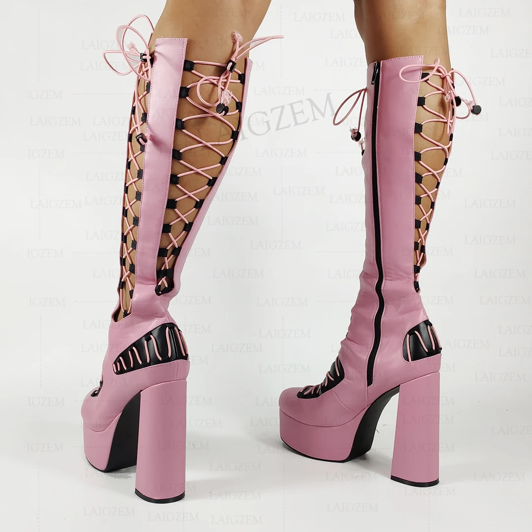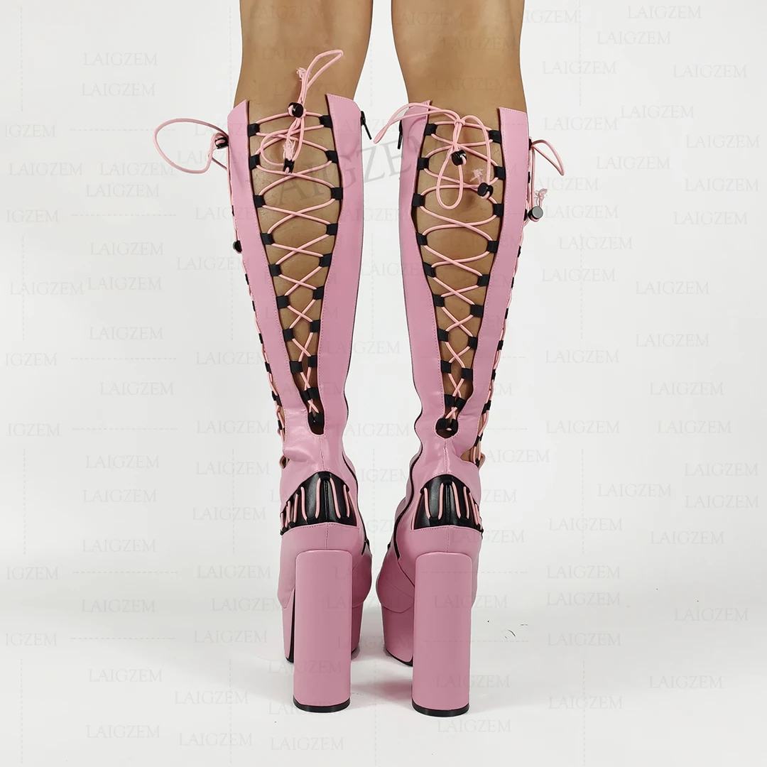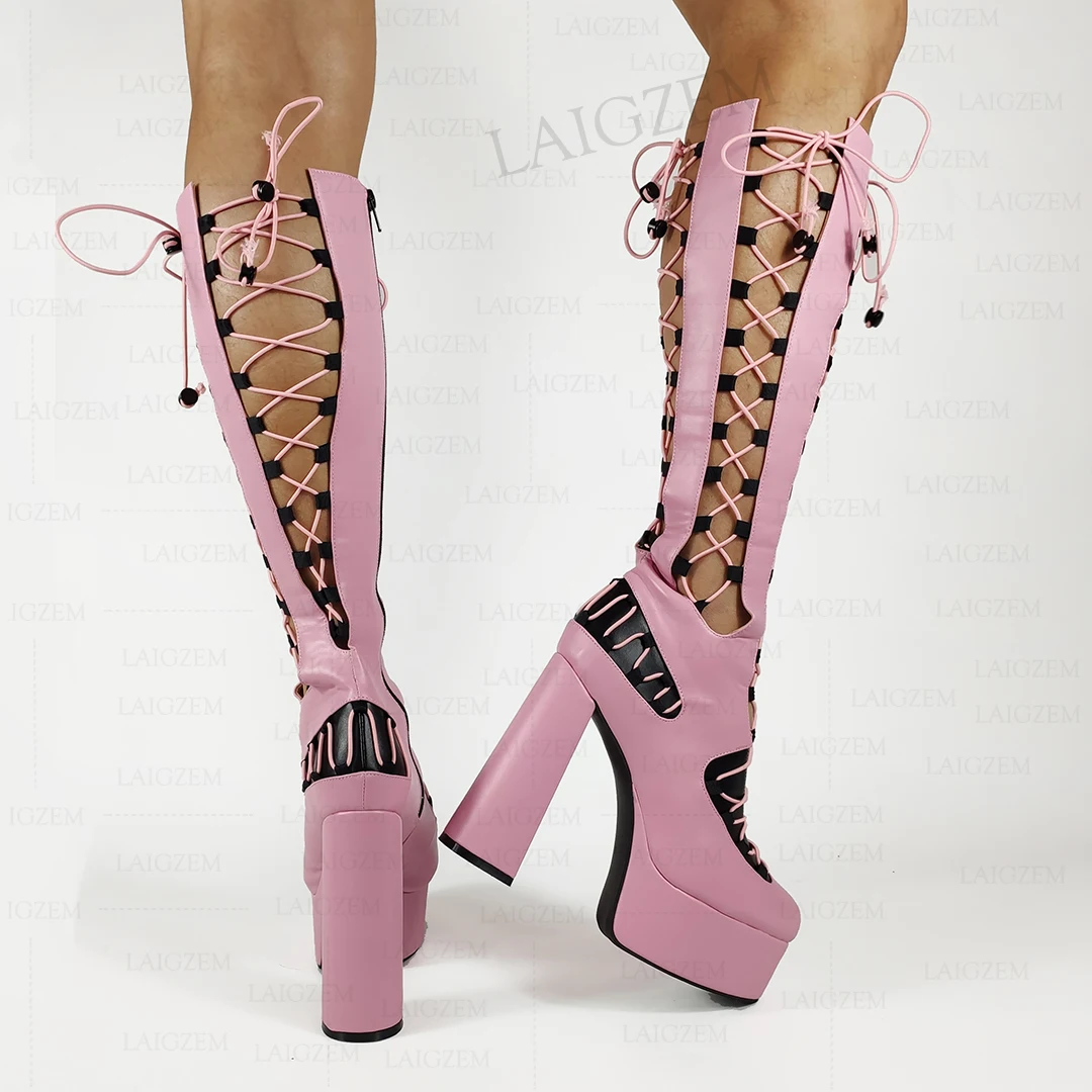 LAIGZEM/женские сандалии до колена; Вечерние туфли-лодочки на молнии сбоку для костюмированной вечеринки; Большие размеры 38, 42, 45, 47