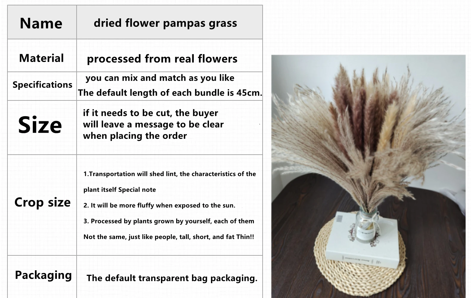3. Поскольку упаковка сдавливается, когда вы получаете продукт, пожалуйста, положите его на прочное солнце, перьевые цветы будут более пушистыми.
