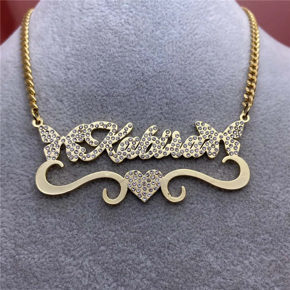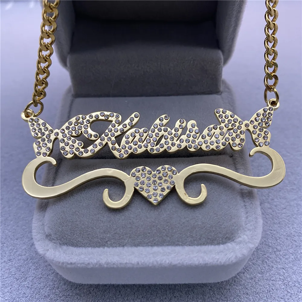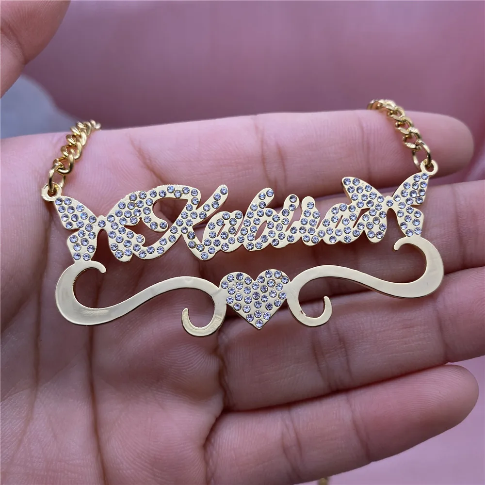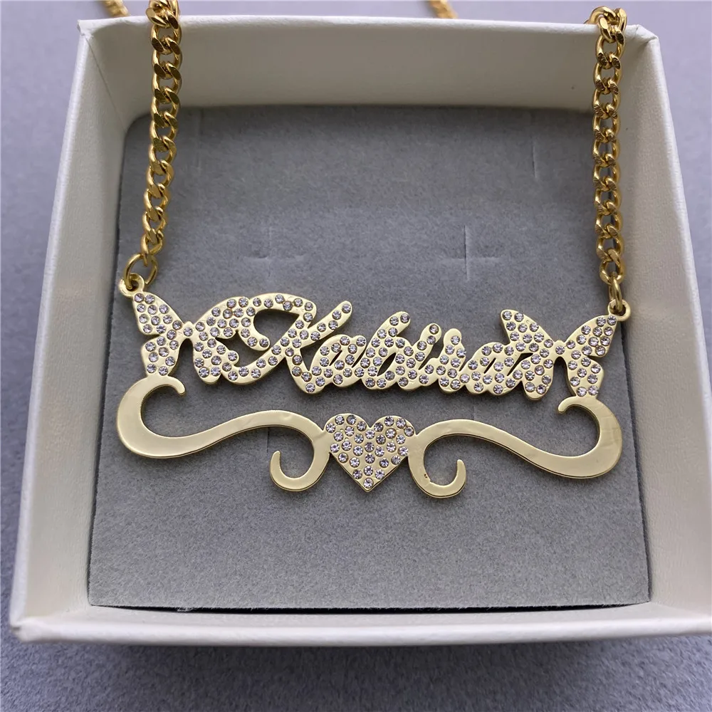 Название: Заказное ожерелье с именем алмаза с бабочкой Персонализированная кубинская цепочка ожерелье для женщин ювелирные изделия из нержавеющей стали Рождественский подарок
