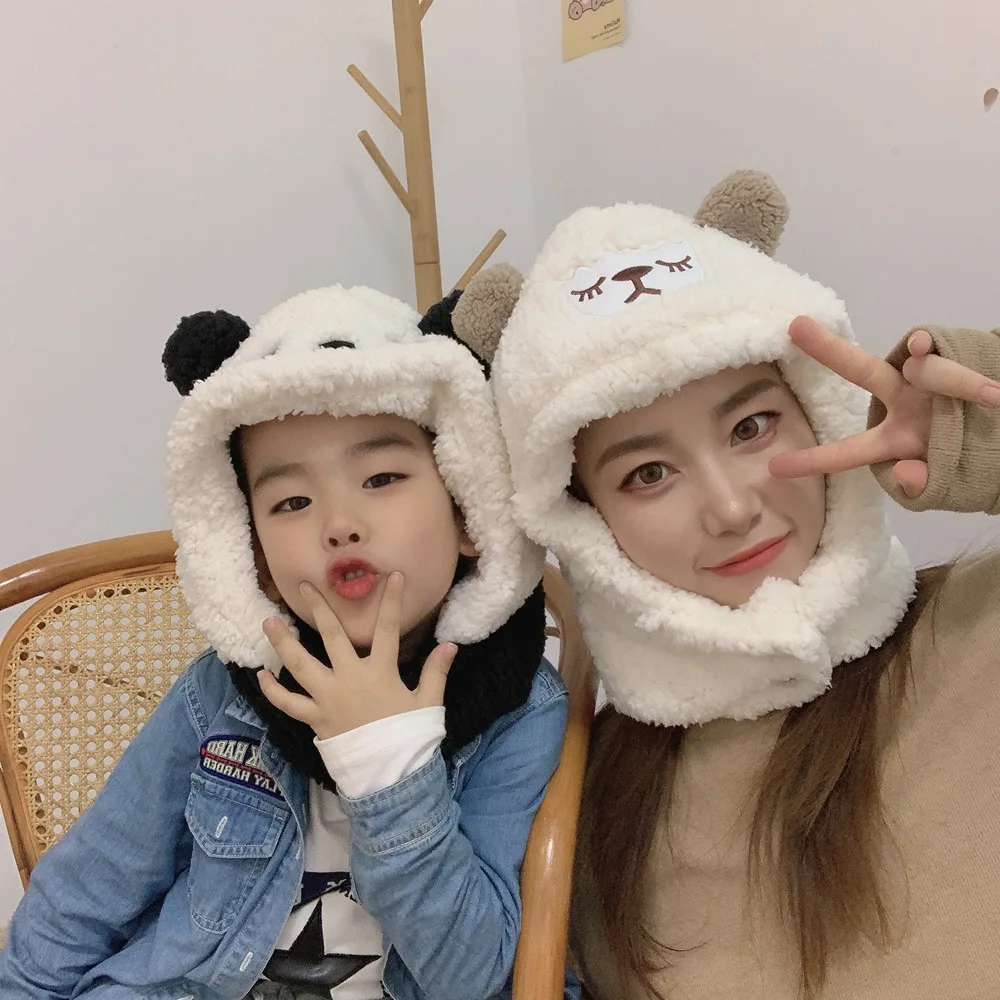 Зимний милый мультяшный медведь ягненок плюшевый теплый Твердые крышки шарф Набор Маска утолщенная защита Ушная шапка для женщин девочек подарок на Новый год