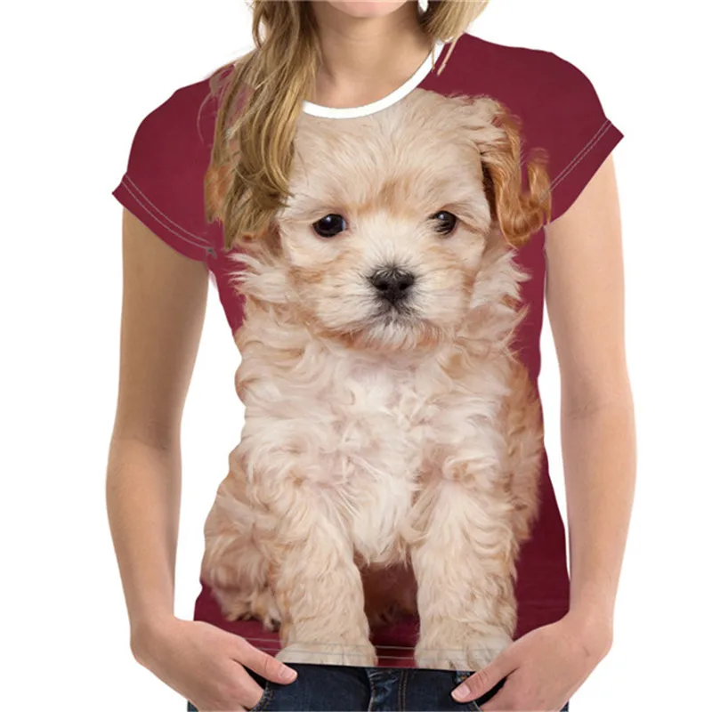 Футболка женская с 3D-принтом собаки, модный топ с круглым вырезом ...