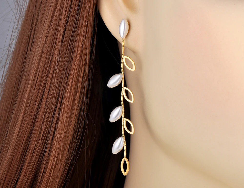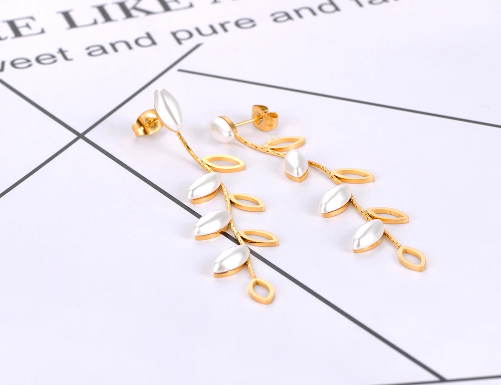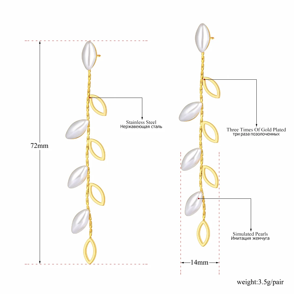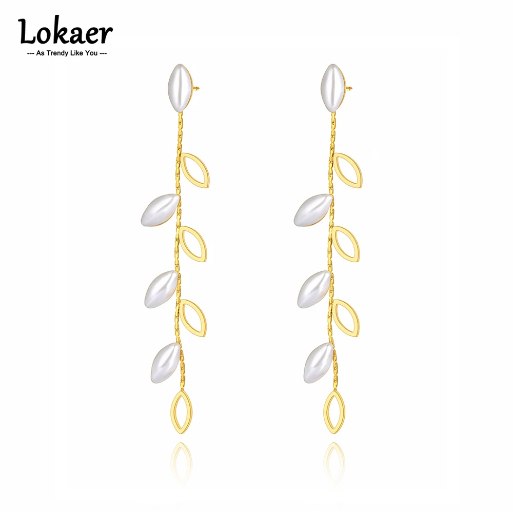 Женские серьги в богемном стиле Lokaer, серьги из нержавеющей стали с белыми жемчужинами и листьями растений, ювелирные изделия для вечеринок, 18 К, E21200