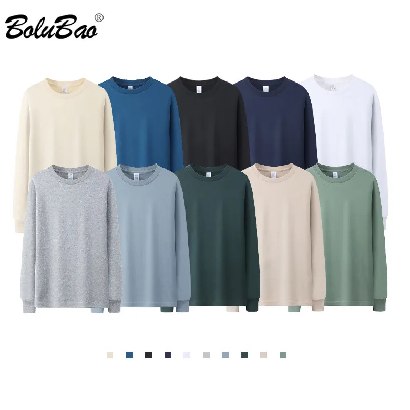Мужская футболка с длинным рукавом BOLUBAO, однотонная Мягкая футболка из 100% хлопка, приталенная Повседневная футболка