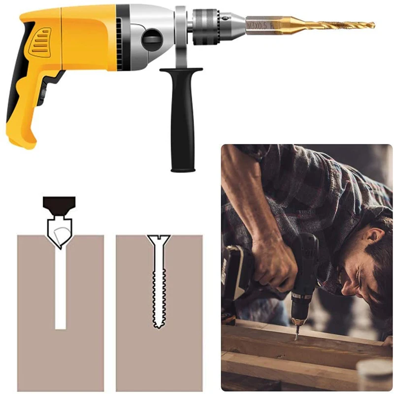3. 【Широко используется 】наборы сверл используются для нарезания на станках, таких как токарные станки. Эти высокоскоростные стальные сверла и сверла для крана являются отличными инструментами для создания резьбы, резки или формирования сопряженных пар внутренних резьбовых деталей. Подходит для сверления и нарезания резьбы на светильник, металлические алюминиевые пластины и утюги. В дополнение к конусности, сверло также обеспечивает заусенцев/столешниц.