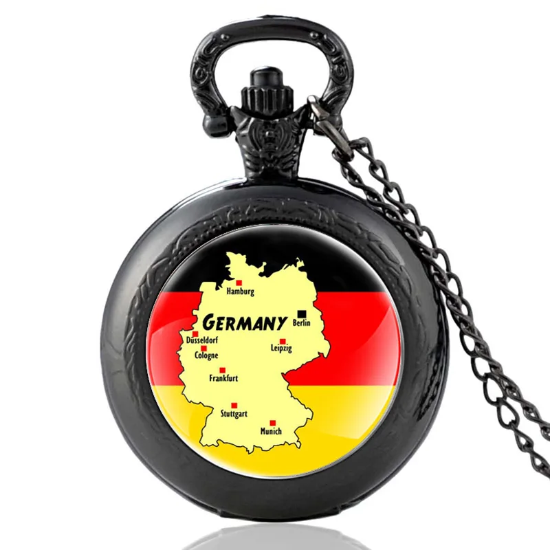 Черные классические стеклянные кабошоновые кварцевые карманные часы с карманом в стиле немецкой карты для мужчин и женщин, подвеска на ожерелье, часы, подарки