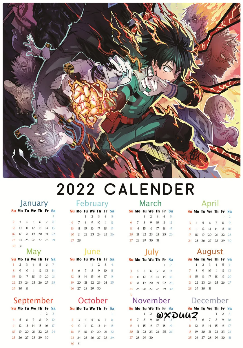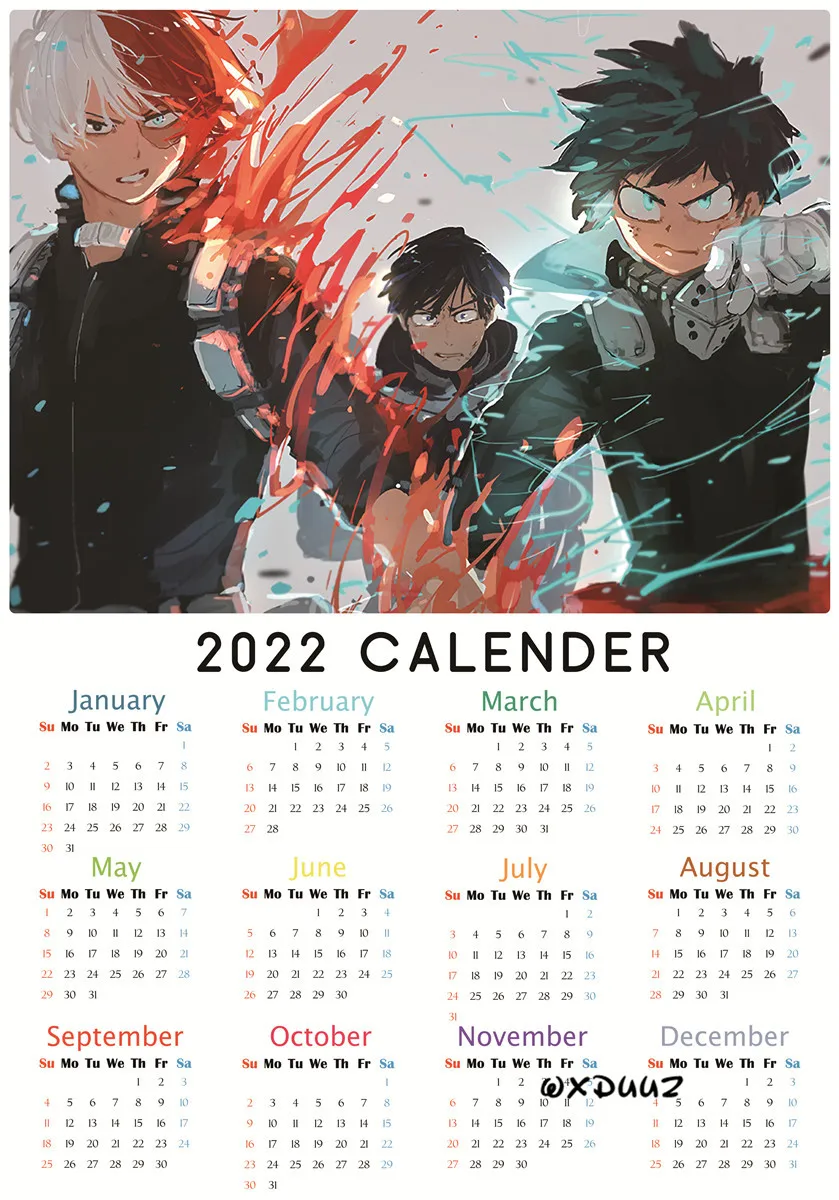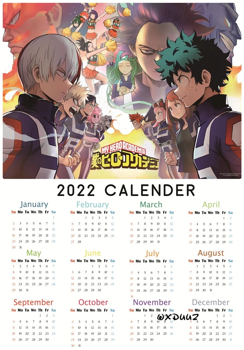 Японский популярный плакат аниме Моя геройская Академия 2022 календарь плакат из ПВХ экологически чистая бумага наклейка на стену для детской комнаты