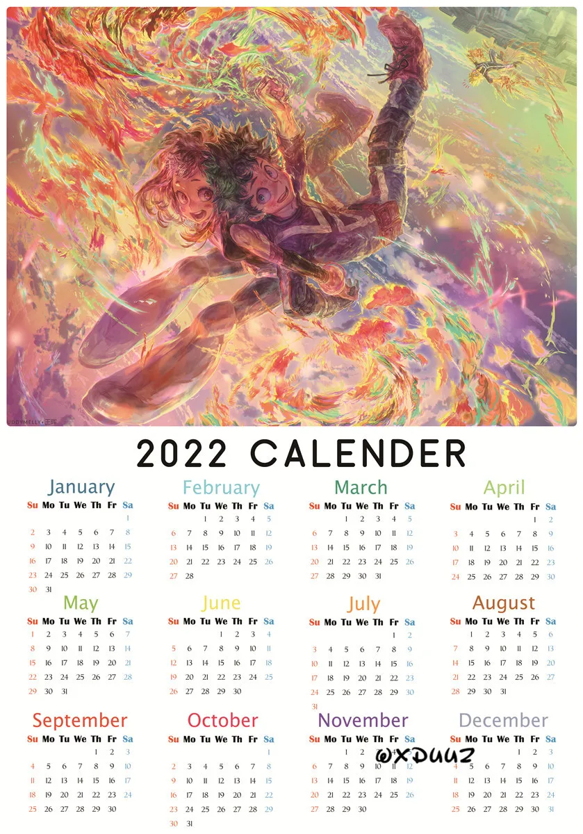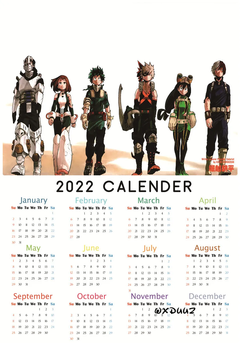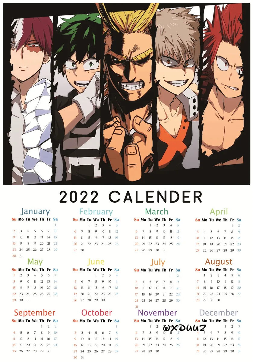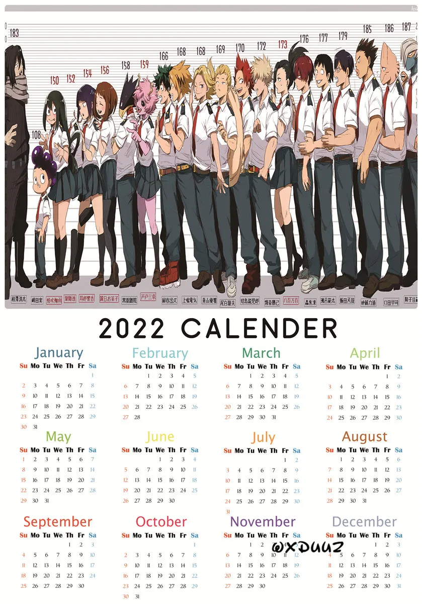 Японский популярный плакат аниме Моя геройская Академия 2022 календарь плакат из ПВХ экологически чистая бумага наклейка на стену для детской комнаты