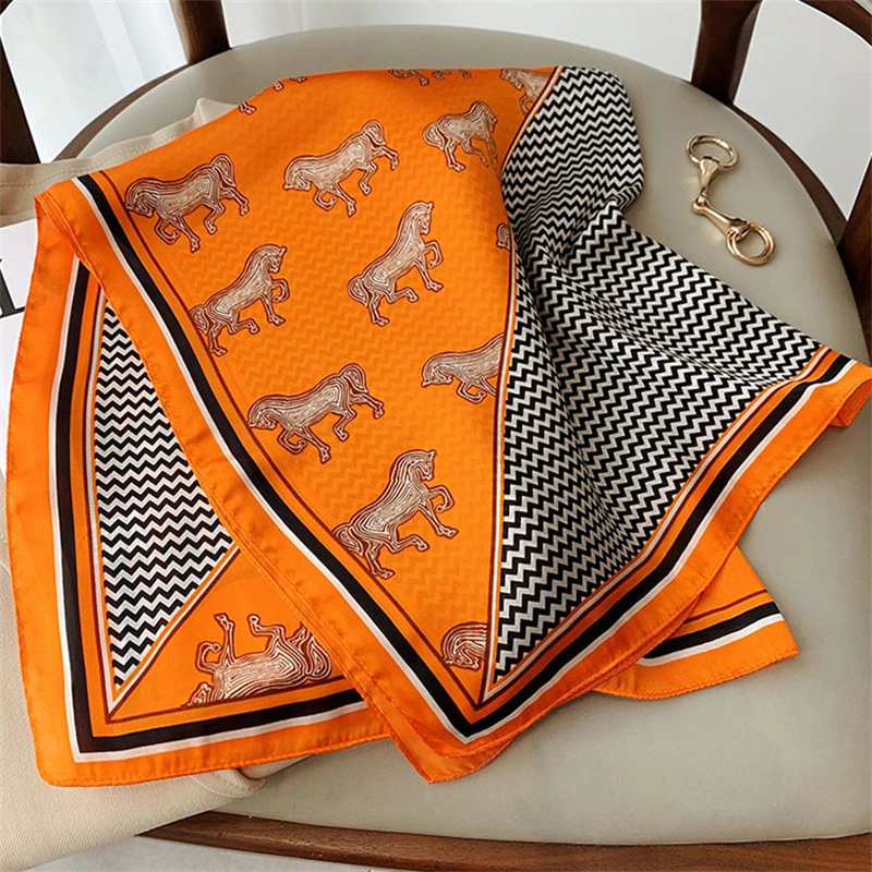 2022 Новый Шелковый атласный шарф для волос 70*70 см женский носовой платок с принтом женская квадратная головная бандана небольшой шейный глушитель хиджаб для девушек