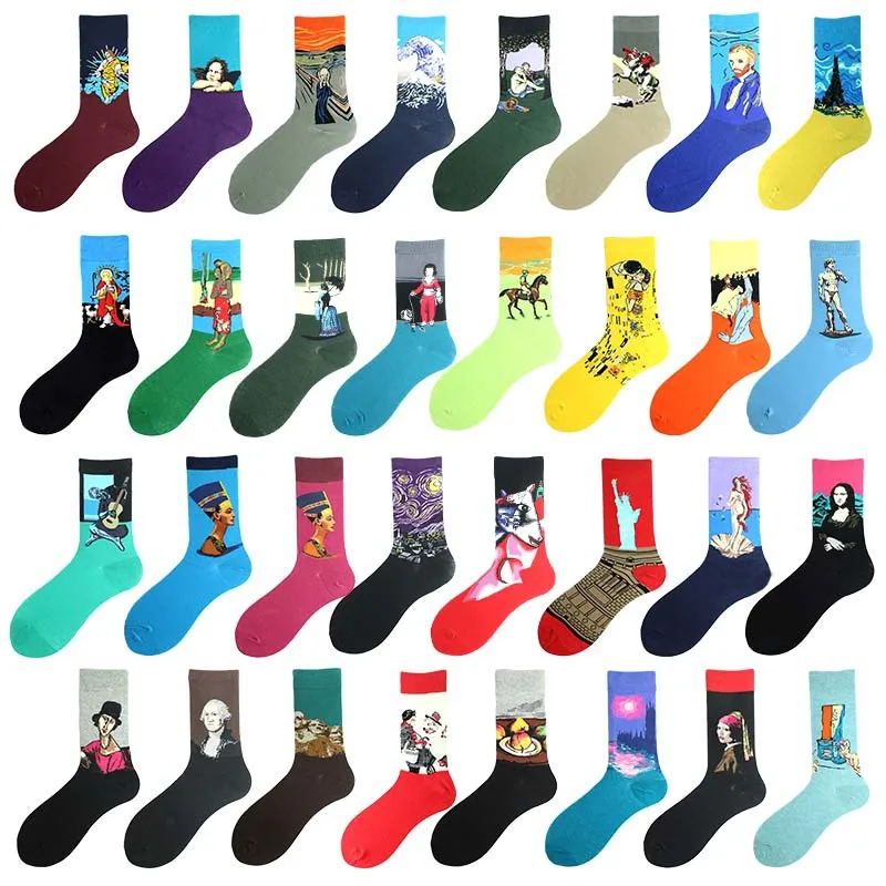 Осень-зима Стиль креативные женские и мужские носки Новое искусство...