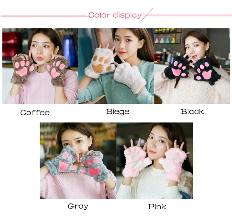 Женские перчатки без пальцев, пушистые плюшевые перчатки с когтями ...
