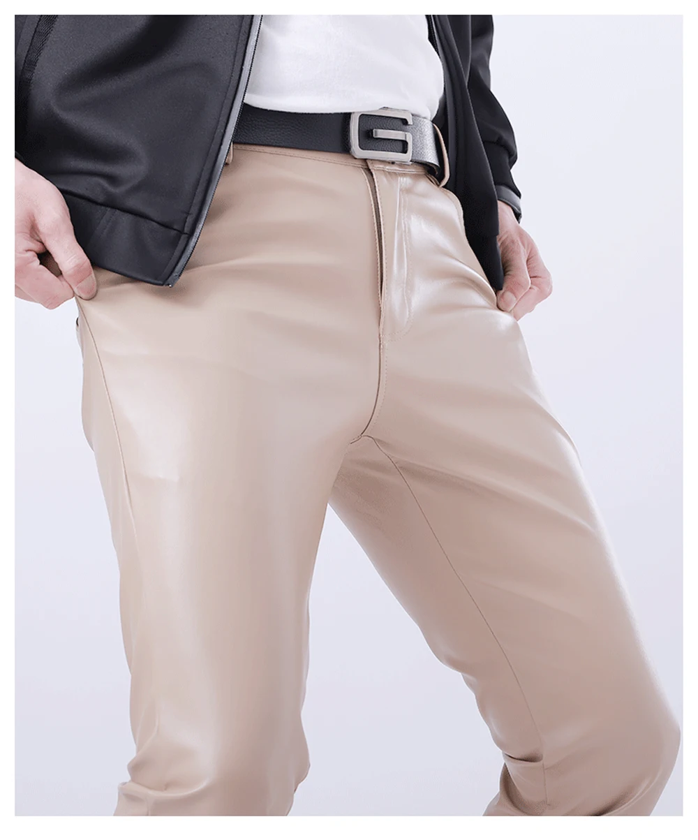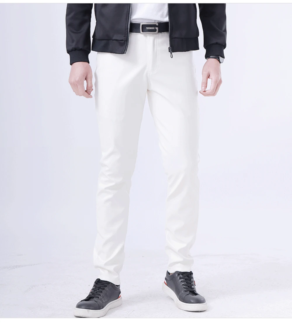 Брюки мужские из искусственной кожи, эластичные, на весну и лето, 2021