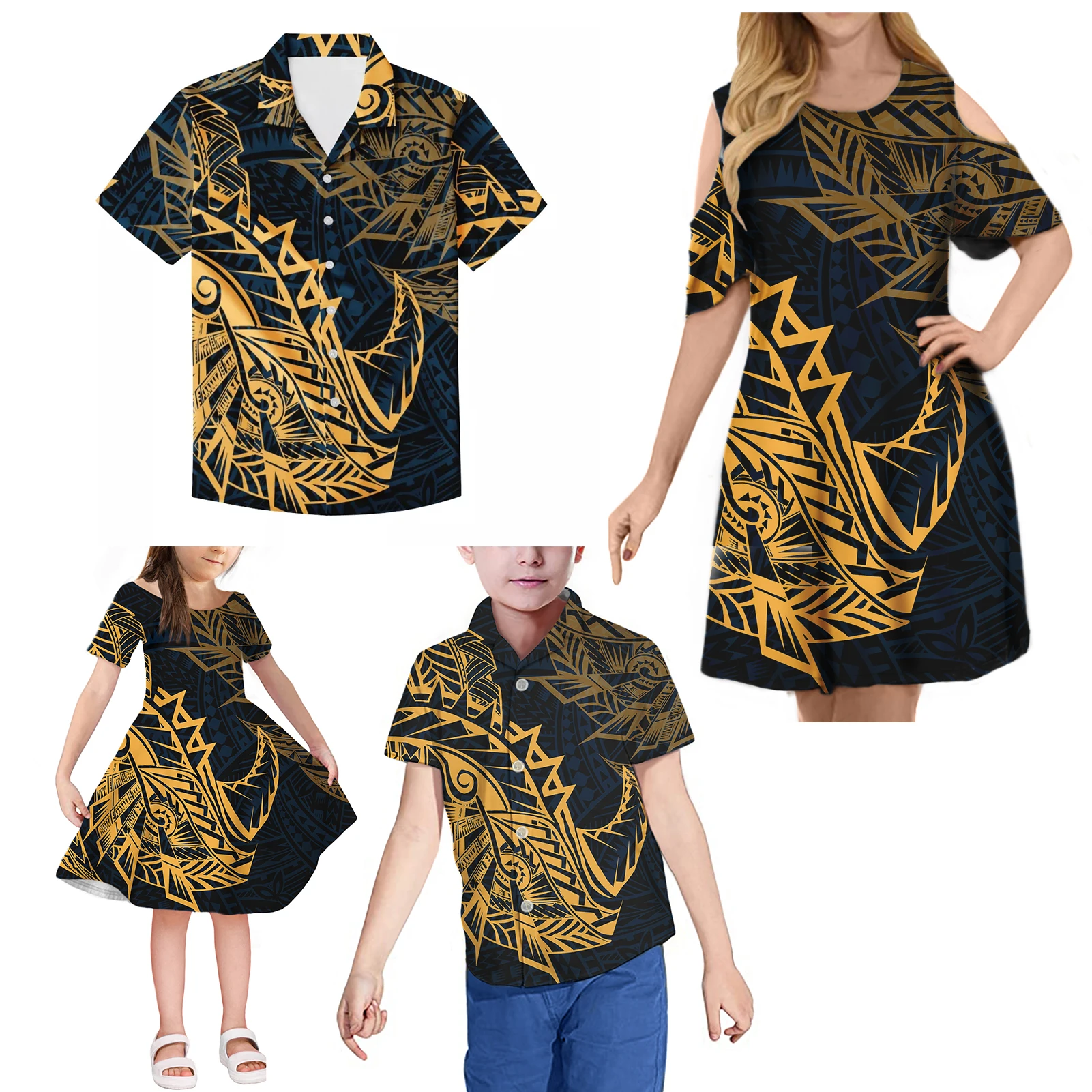 Оптовая продажа, Семейный комплект одежды для родителей и детей, женское платье с принтом Tonga в Полинезию, платье с рюшами и открытыми плечами, мужские рубашки, Детская футболка