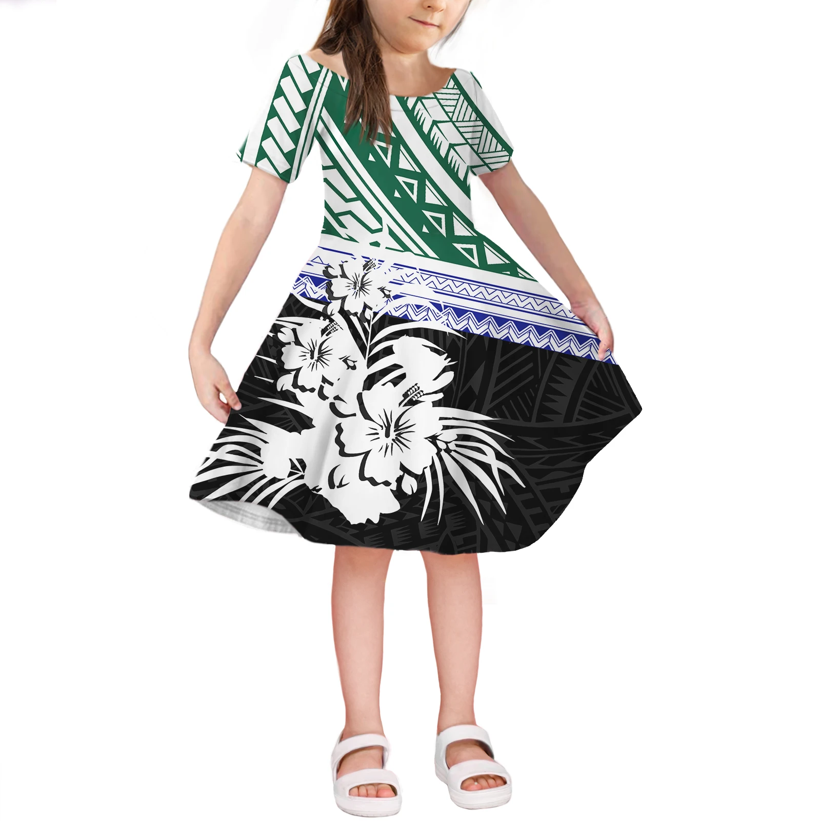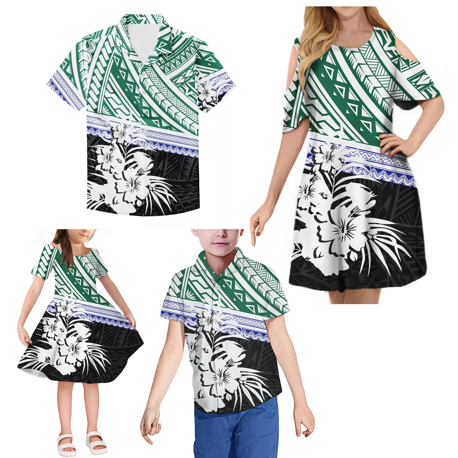 Семейный комплект, дизайнерская рубашка, комплект из 4 предметов, полинезийская дизайнерская мужскаяДетская рубашка с принтом, женское платье с коротким рукавом, Новое поступление