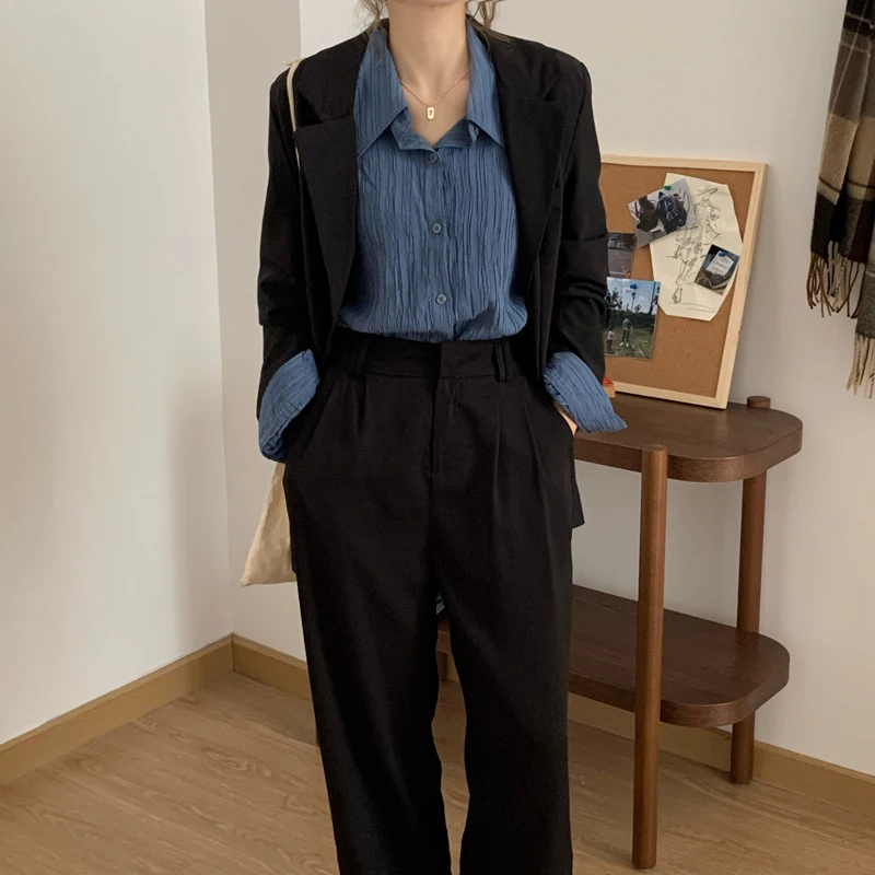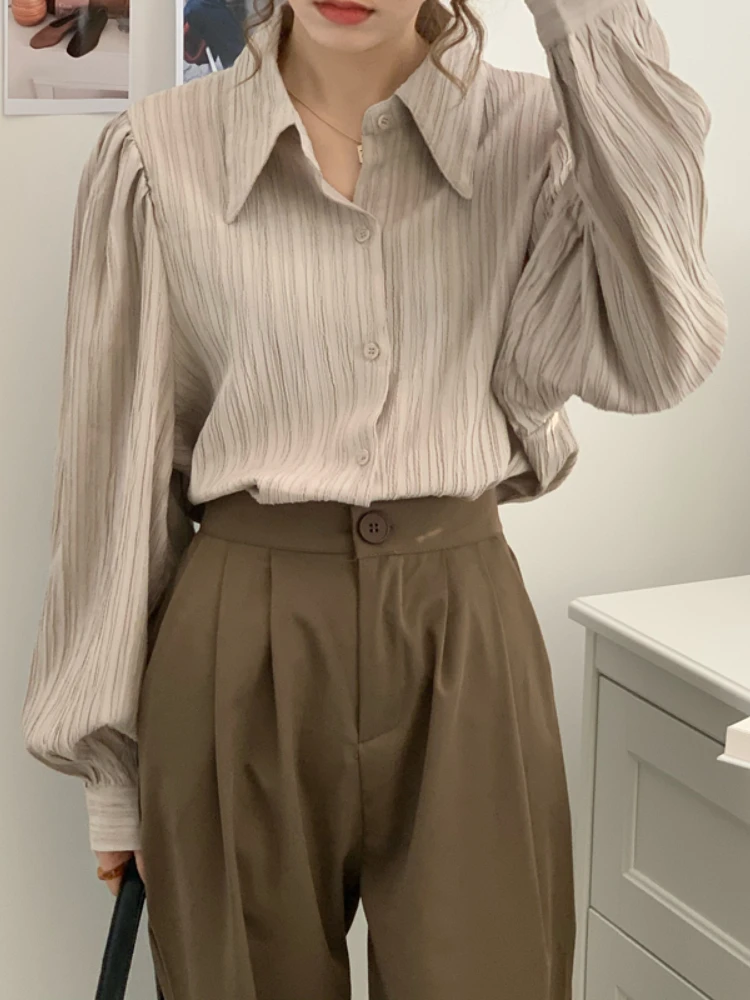 Рубашка женская в складку, элегантная винтажная сорочка во французском стиле, однотонная удобная, с отложным воротником, подходит под все, для отдыха и офиса, на осень