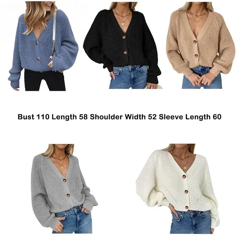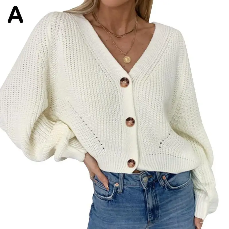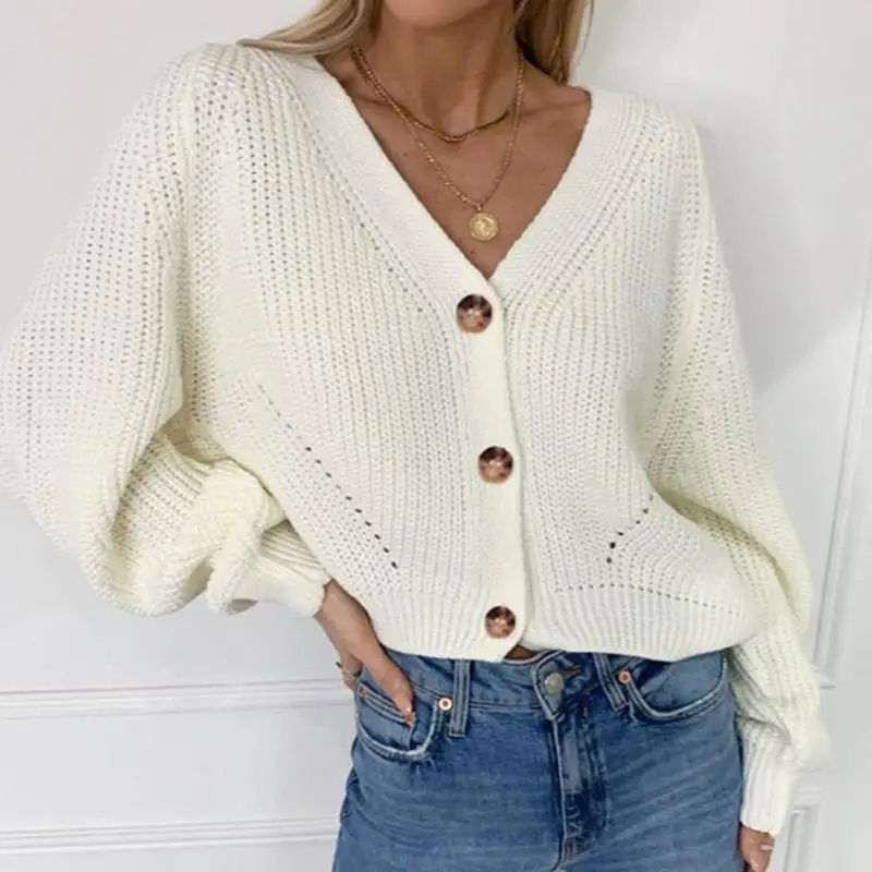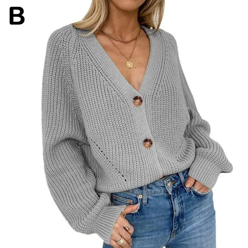 Женский вязаный кардиган на пуговицах, с V-образным вырезом