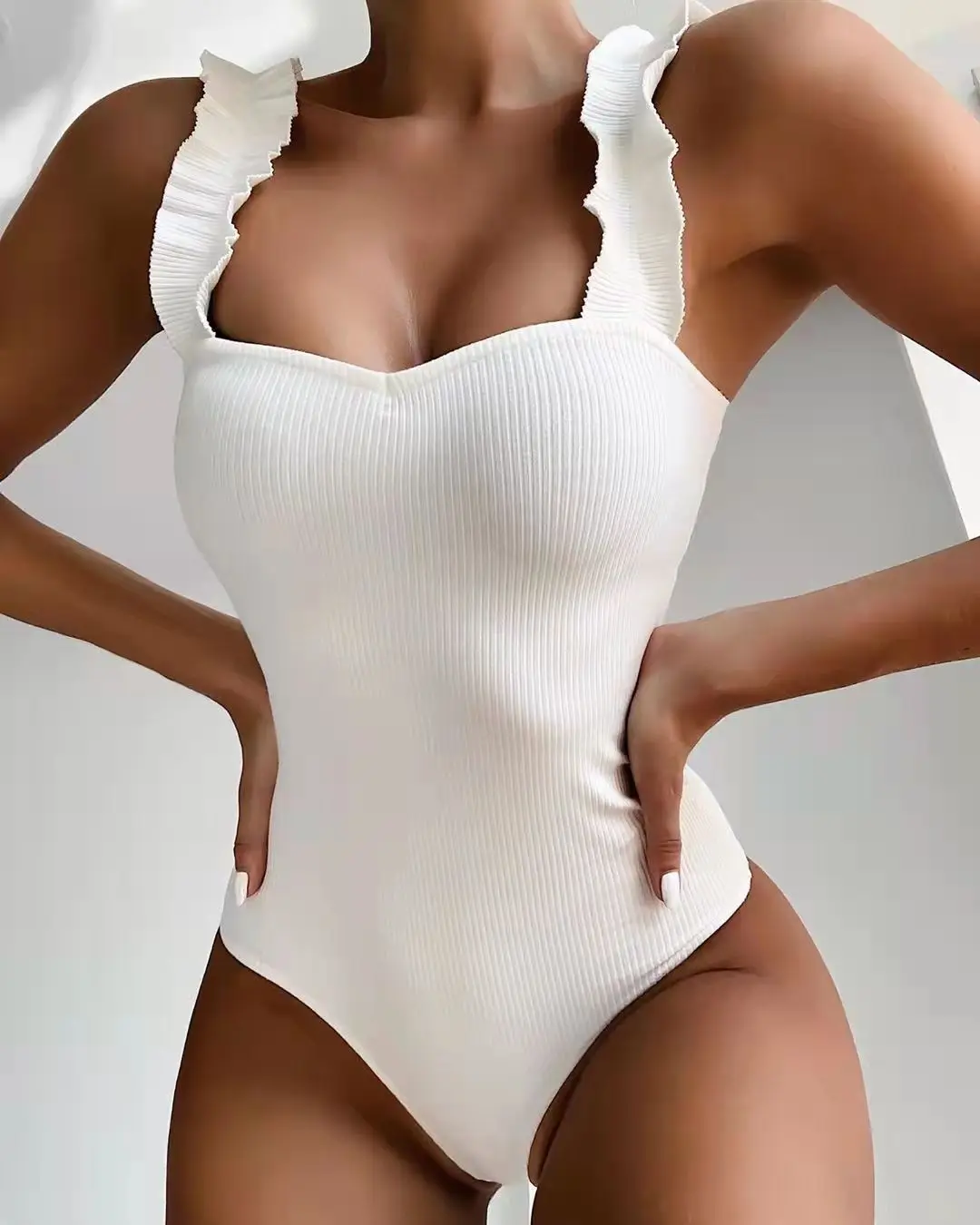 Женский слитный купальник, белый купальник с рюшами, монокини с пуш...