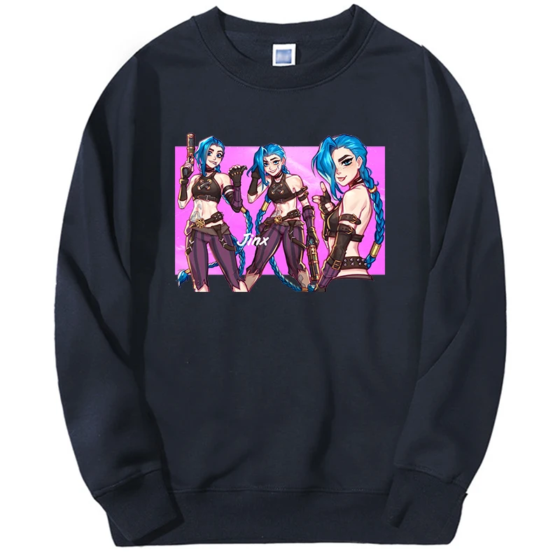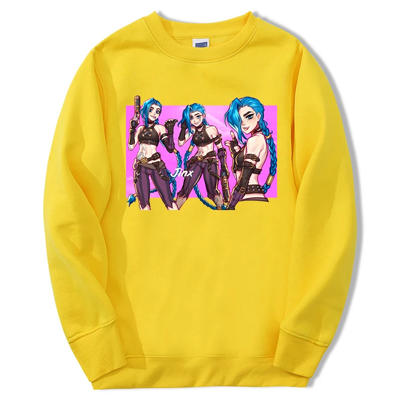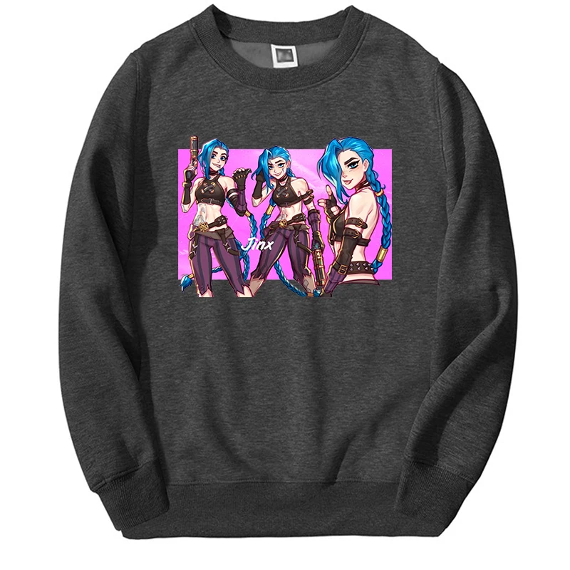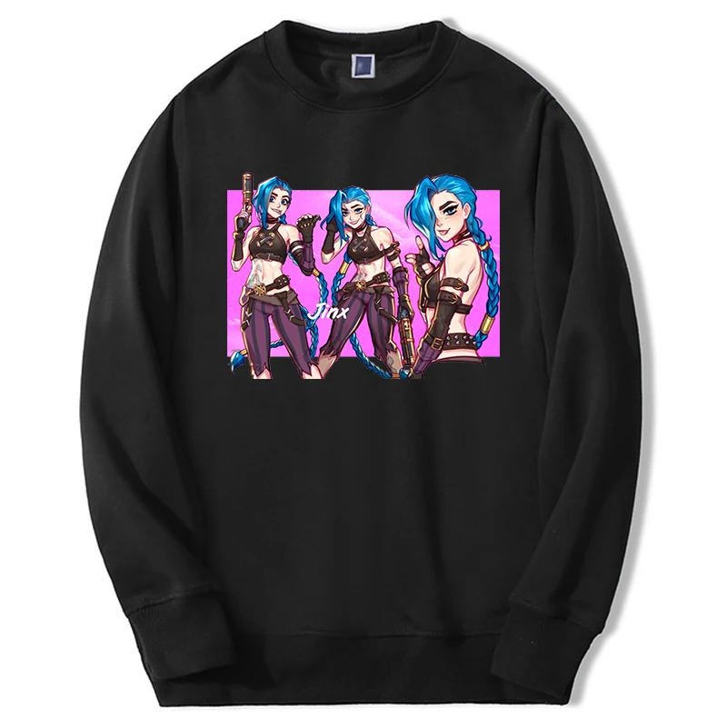 Лидер продаж, зимние мужские толстовки Arcane с героями аниме и мультфильмов Jinx, толстовки большого размера d, теплые уличные толстовки с рисунком сумасшедшей девушки