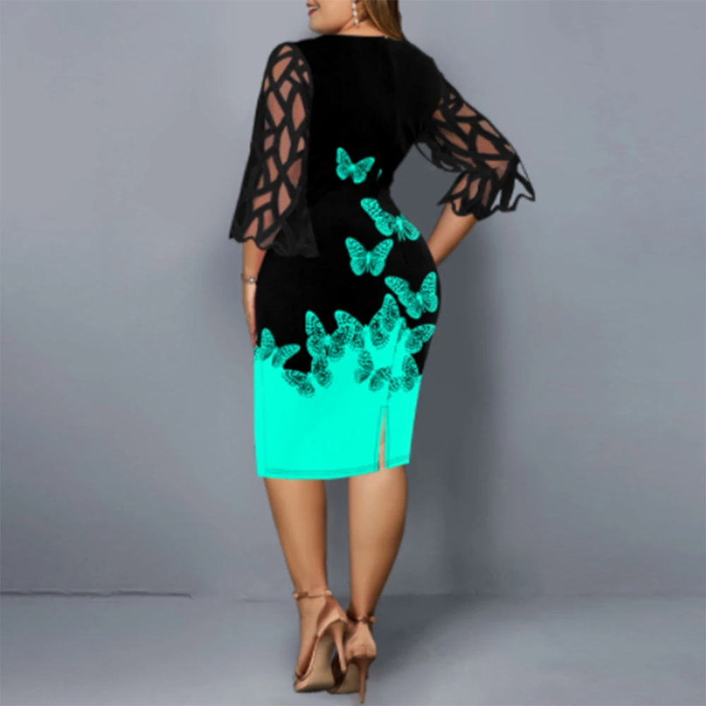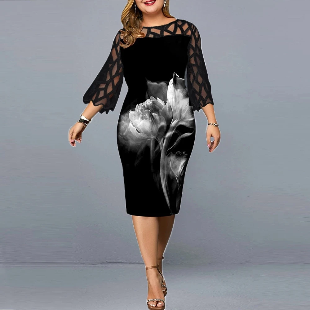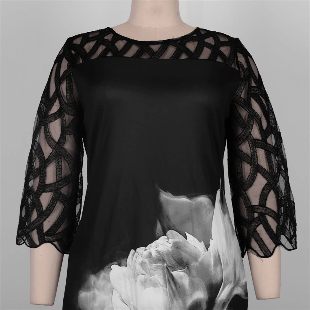 Женское платье с рукавом 34, кружевное лоскутное вечернее платье до середины икры с принтом, платье для гостей свадьбы или вечеринки, подарок для матери невесты