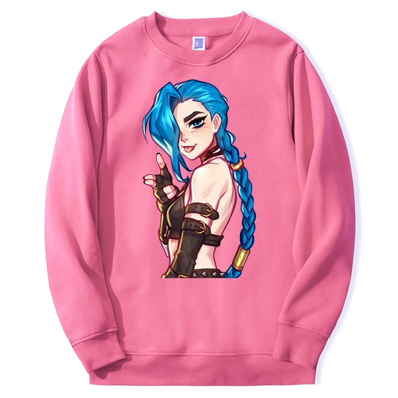 Горячая аниме мультяшная Jinx Зимняя Мужская Хип-Хоп Печать Arcane Толстовка флисовый Свитшот пудра Arcane Мужская простая уличная одежда