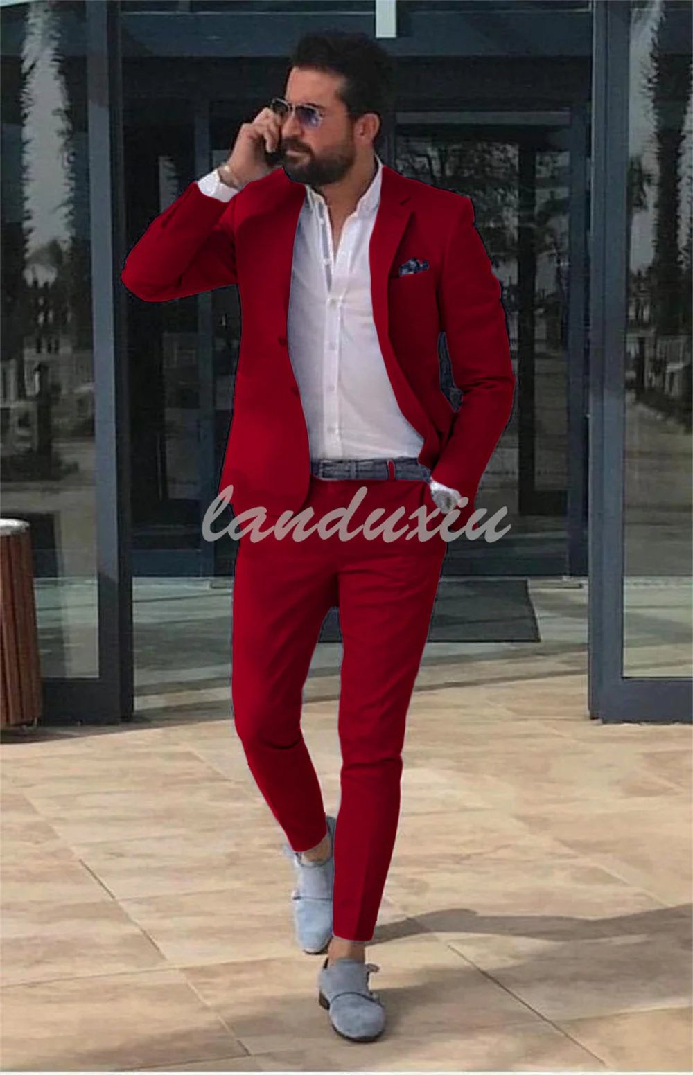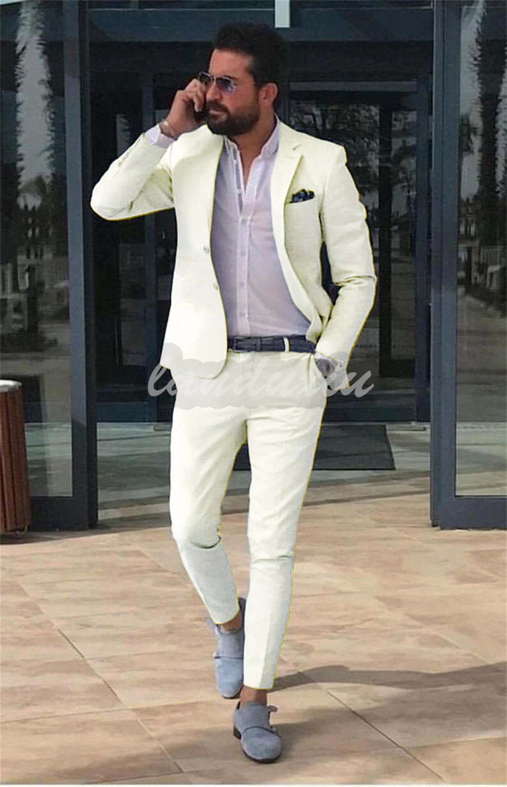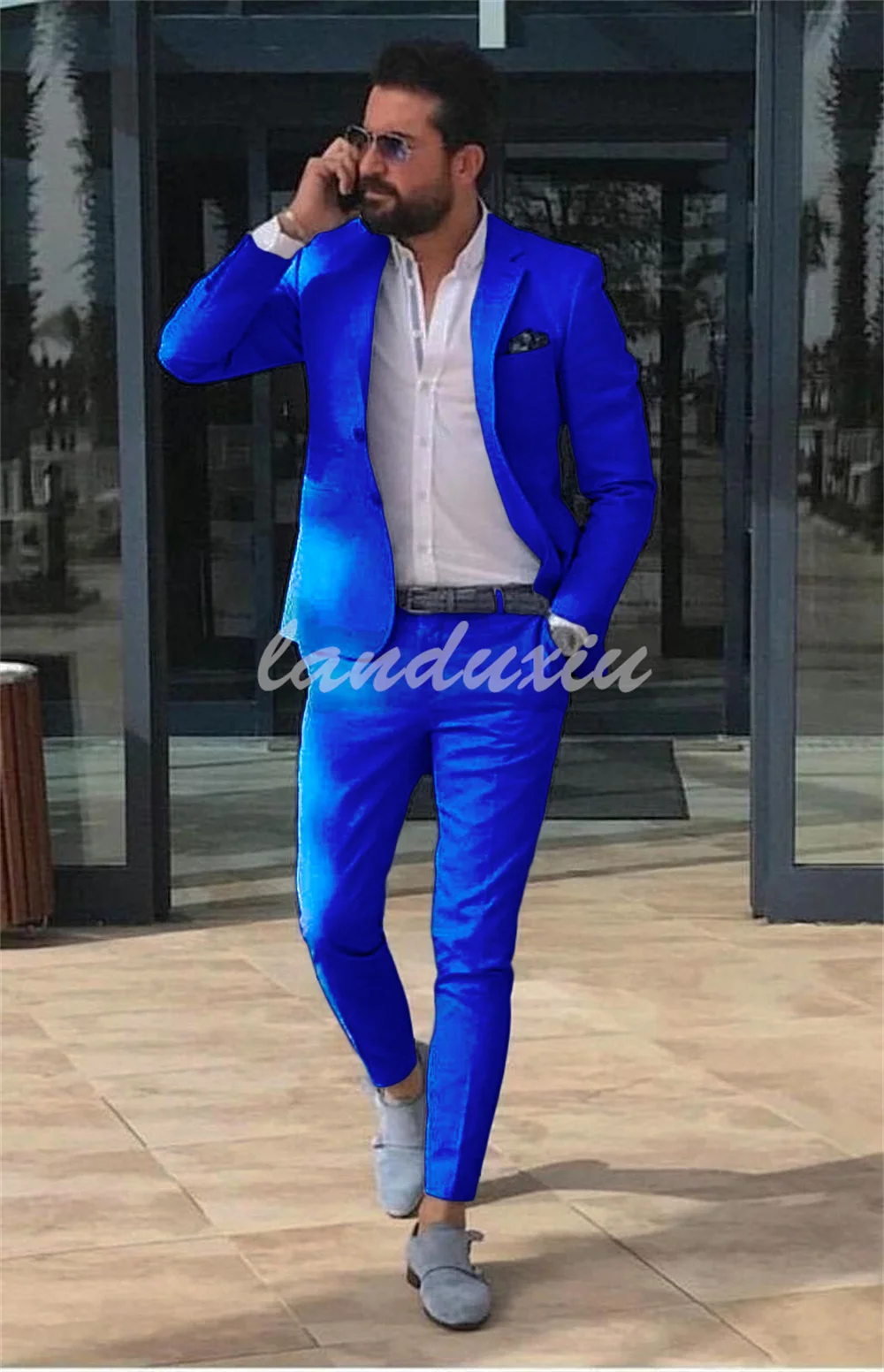 Мужской костюм небесно-голубого цвета, мужские костюмы из 2 предметов, пляжные смокинги для женихов, Свадебные смокинги для мужчин, официальный костюм для выпускного вечера с вырезом, пиджак и брюки