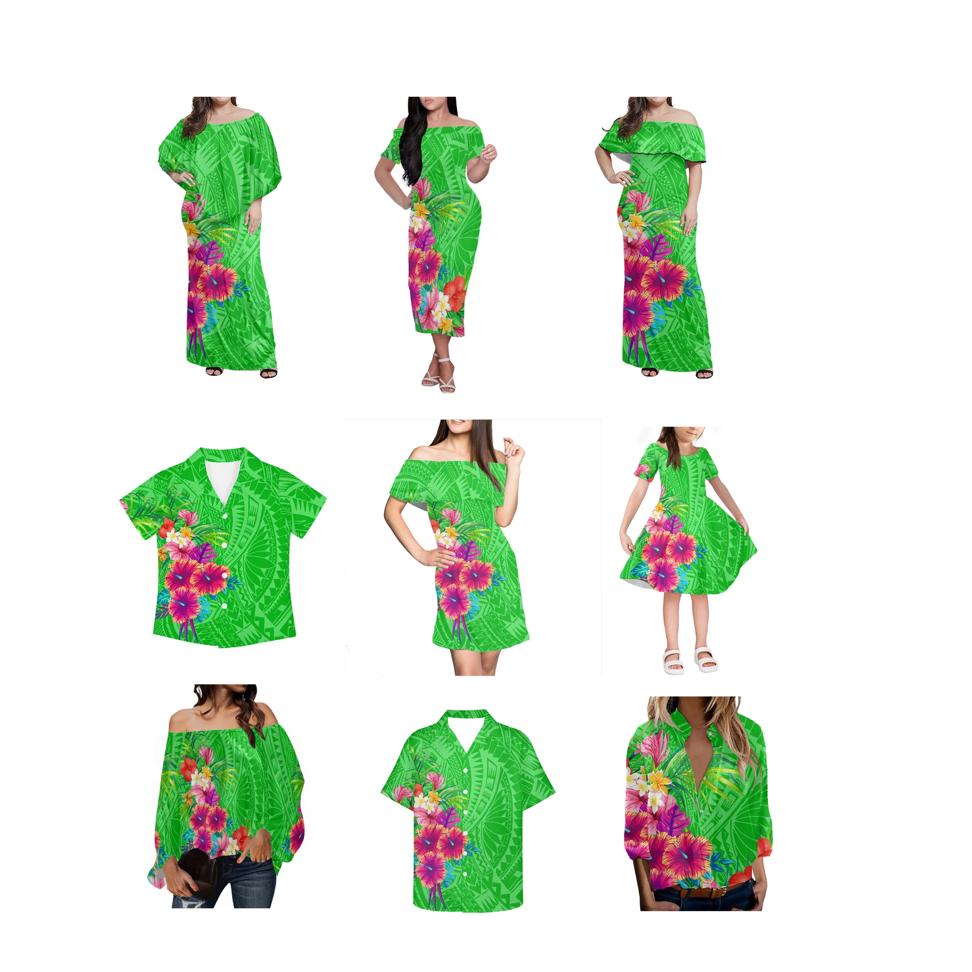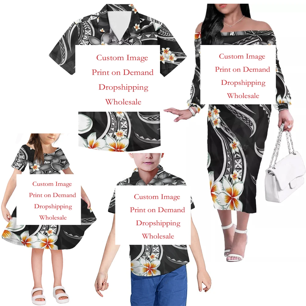 Комплекты из 4 предметов, женское платье с индивидуальным рисунком, Семейный комплект с Полинезийским этническим дизайном, одежда, детская одежда для взрослых