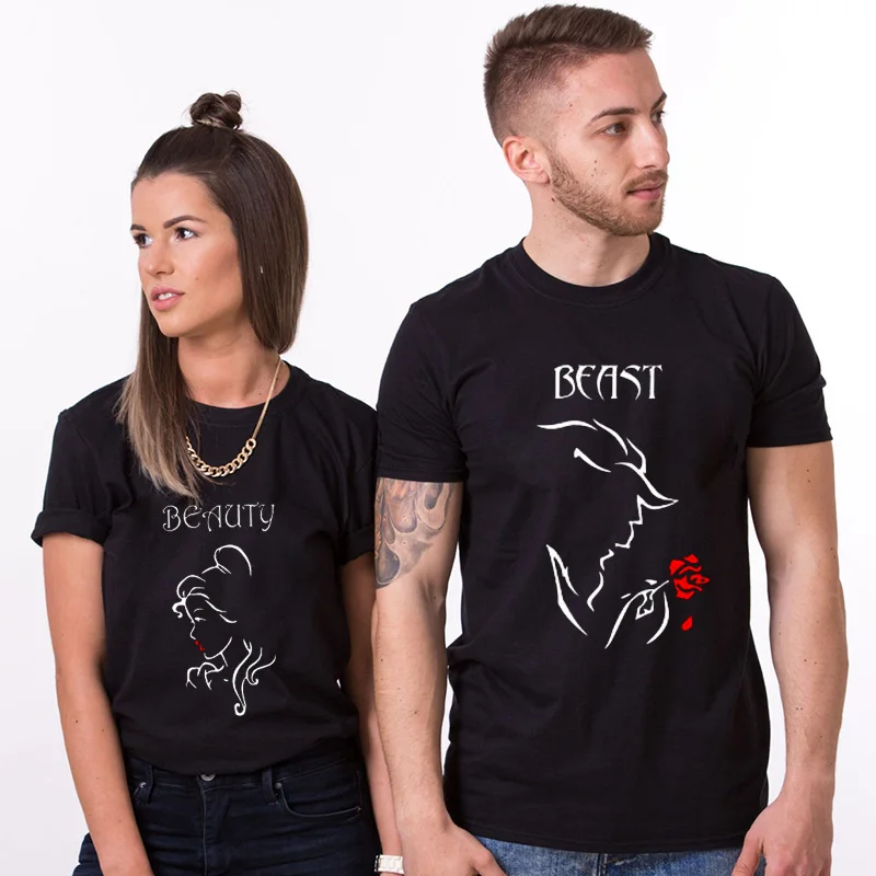 Футболка для пары, подходящая ко всему футболка в виде зверя, мужчин, розы, красавицы, влюбленных, Женская стандартная футболка унисекс, мягкие женские футболки