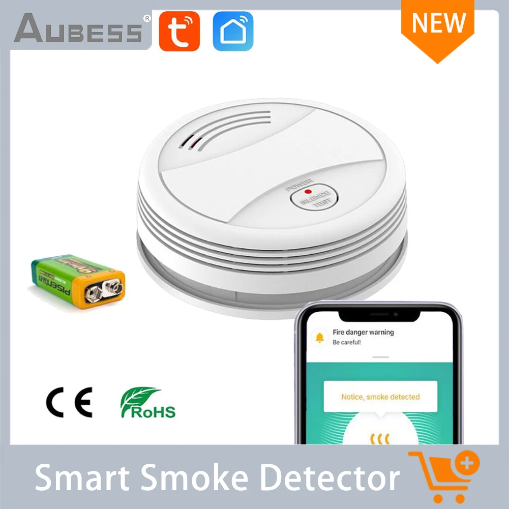 Смарт-детектор дыма Aubess Tuya, Беспроводной детектор дыма с Wi-Fi, пожарная сигнализация, управление через приложение Tuya, для дома и офиса, противопожарная сигнализация