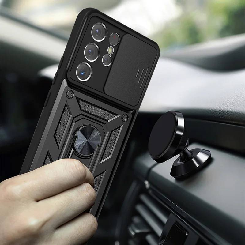 Ударопрочный телефон с защитой объективаЧехол для Samsung S21 S20 Plus Note20 Ultra A52 A72 A82 A51 A52 A71 с магнитным кольцом-держателем