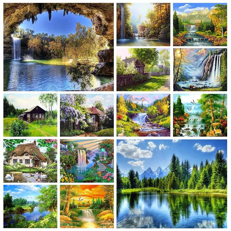 Алмазная 5D картина сделай сам, пейзаж, водопад, полноразмерная вышивка, Набор для вышивки крестиком, мозаика, картина, украшение, подарок