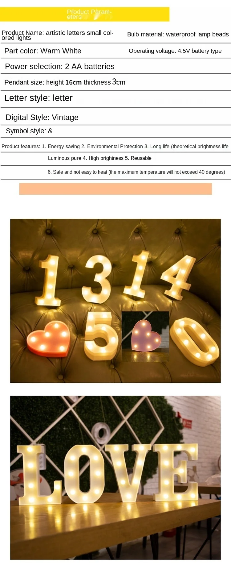 Светодиодный ночник с 26 буквами, 0-9 цифр, лампа с днем рождения, ...