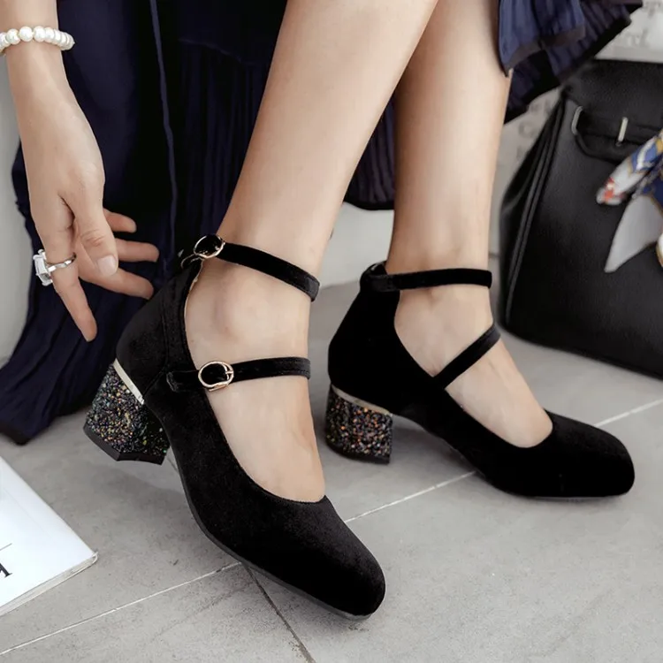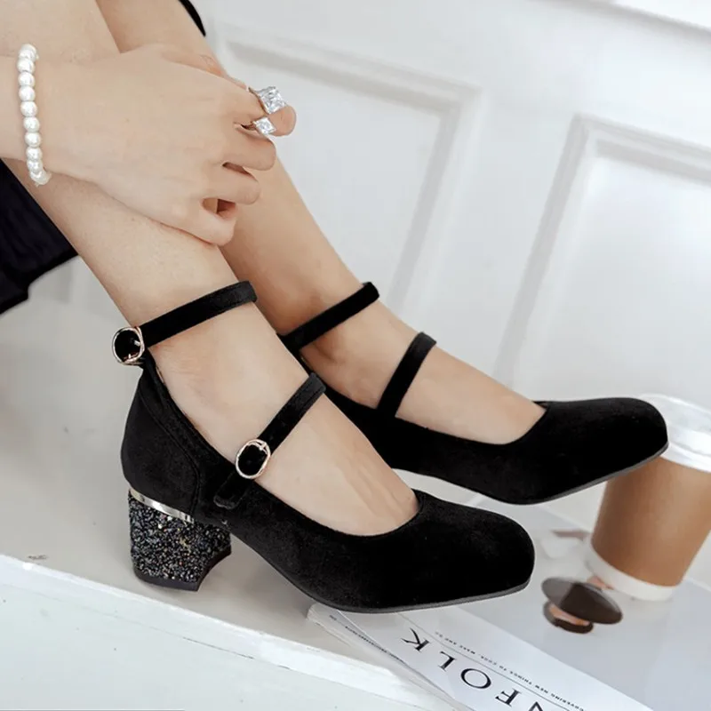 Glitter Block Heels PumpsLadies Office Shoes High-heeled