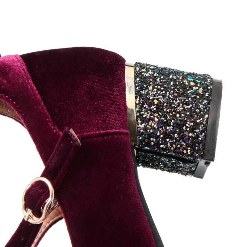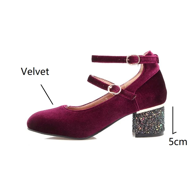 Женские бархатные туфли Ochanmeb, весенние туфли с двумя ремешками и пряжкой, велюровые туфли-лодочки с блестками на каблуке, 2022