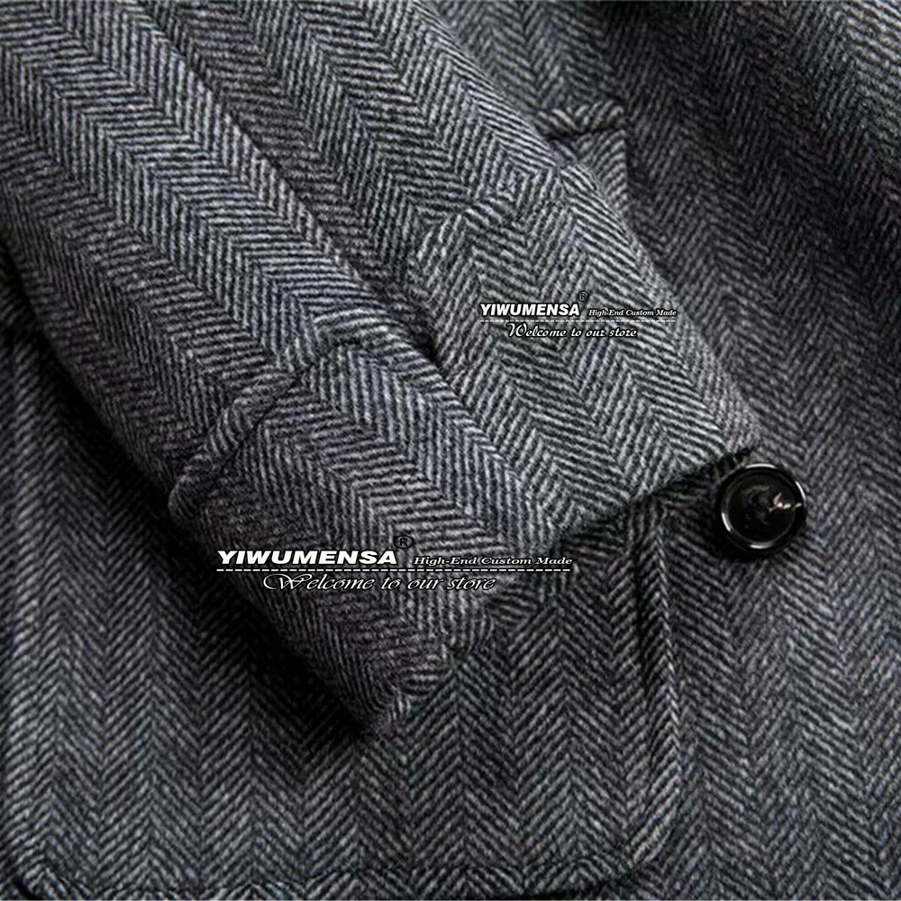 Мужской двубортный блейзер для деловых встреч, длинный жакет из твида и смешанной шерсти, серого цвета, осеньзима