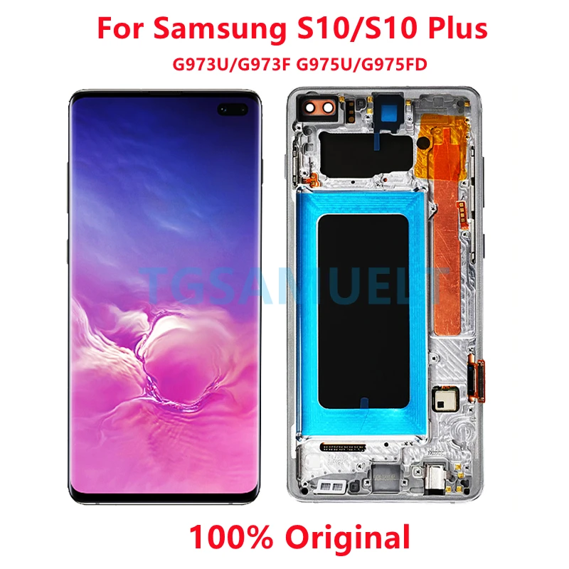 100% Оригинальный Amoled ЖК-дисплей для Samsung Galaxy S10 Plus дисплей с рамкой SM-G975FDS G975A G973U1 S10 ЖК-экран Запасные части