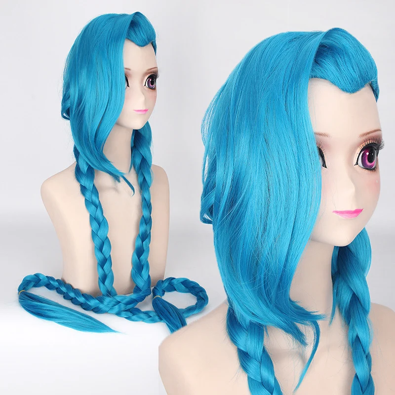 Аниме LOL Arcane The Loose Cannon Young Jinx парик для косплея синий Плетеныйкороткий Боб Хэллоуин карнавальвечерние синтетические волосы