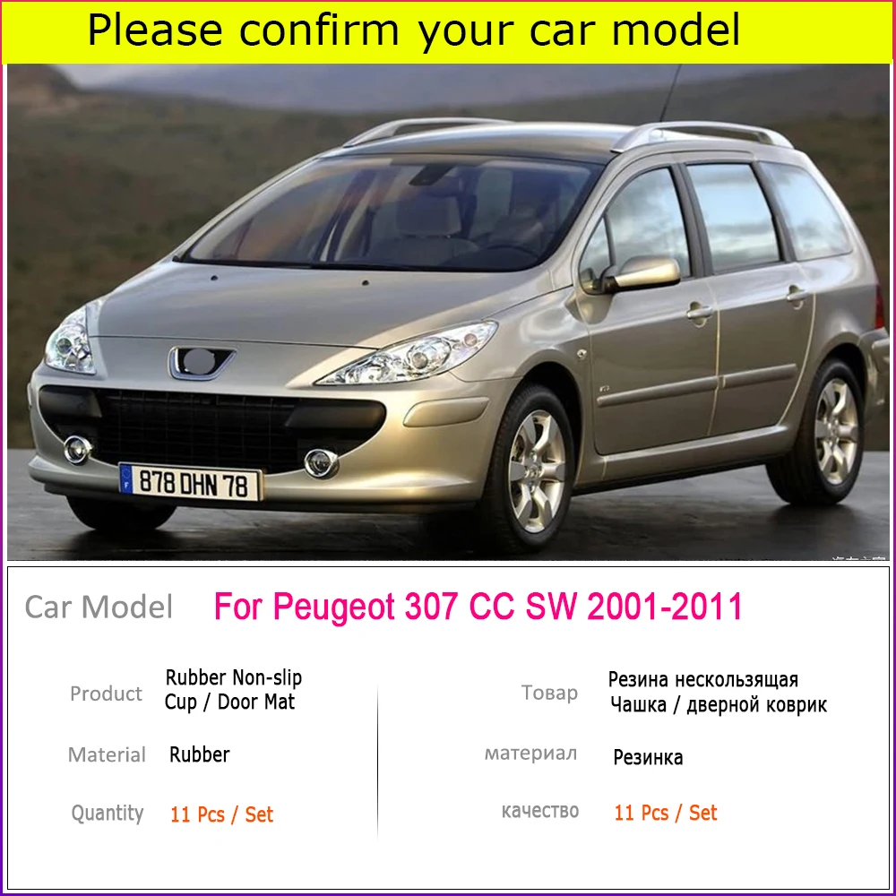 Резиновый противоскользящий дверной коврик для Peugeot, автомобильный коврик Peugeot 307 CC SW 2011 ~ 2001, подстаканник, задвижки, внутренние аксессуары 2006, 2010, 2009, 2008, 2007, 2006, 2005, 2004, 2003, 2002