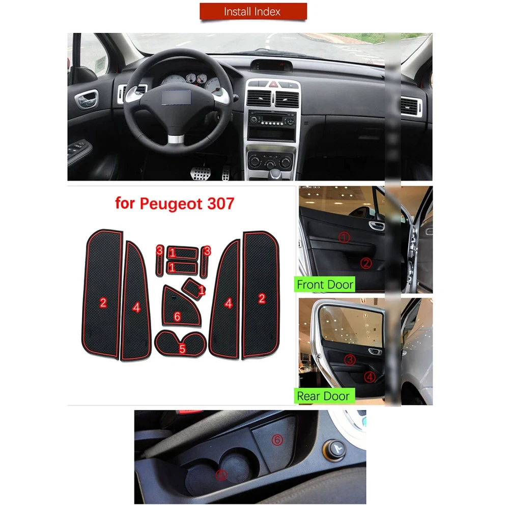 коврик придверный коврик для телеф в авто Резиновый противоскользящий коврик для Peugeot 307 cc sw 2011 2001, накладка на чашку с пазами для двери, аксессуары для интерьера двери 2006 2005 2004 2003 2002