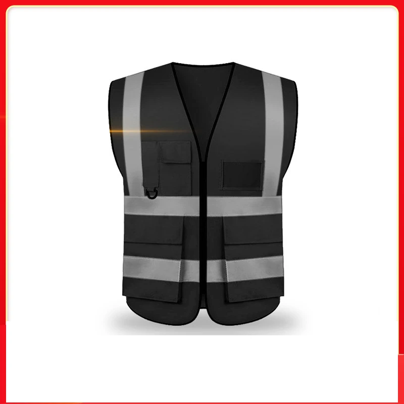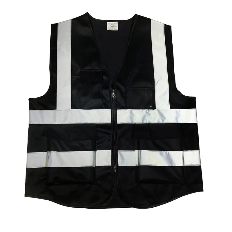 Черный жилет безопасности светоотражающий с карманом и молнией жилет для строительства со светоотражающими полосками высокая видимость Рабочая форма