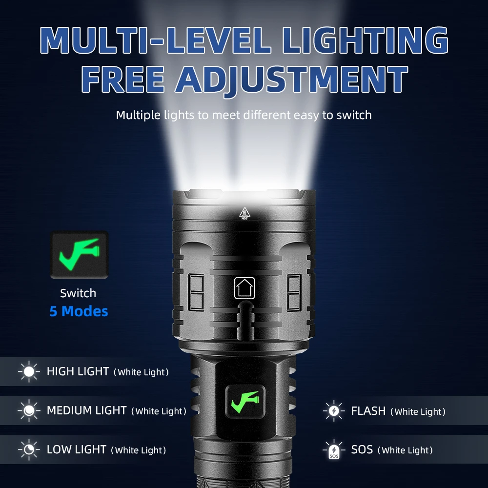 16-ядерный XH-P160 светодиодный фонарик с зарядкой от USB, самый мощный фонарик для длинных съемок, 26650 масштабируемый наружный охотничий ручной фонарь