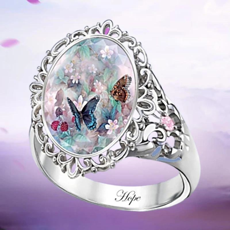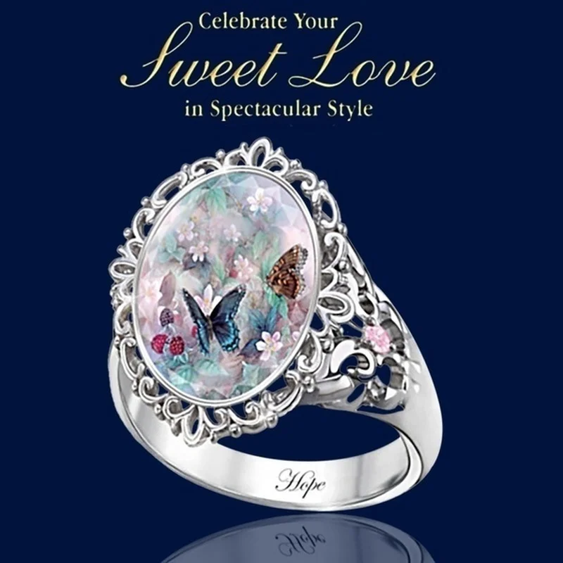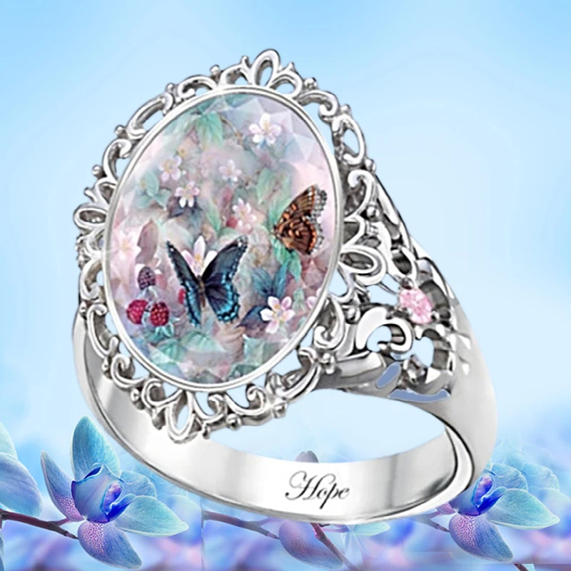 кольца кольцо женское кольцо кольцо мужское парные кольца кольца 2021 тренд серебро 925 настоящее кольцо Модный доход, Изысканные цветы, кольца-бабочки, красочные бабочки танцуют среди цветов, подарки на помолвку