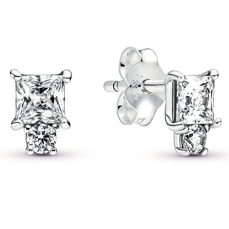 Женские серьги-гвоздики из серебра 925 пробы с круглым и квадратным...