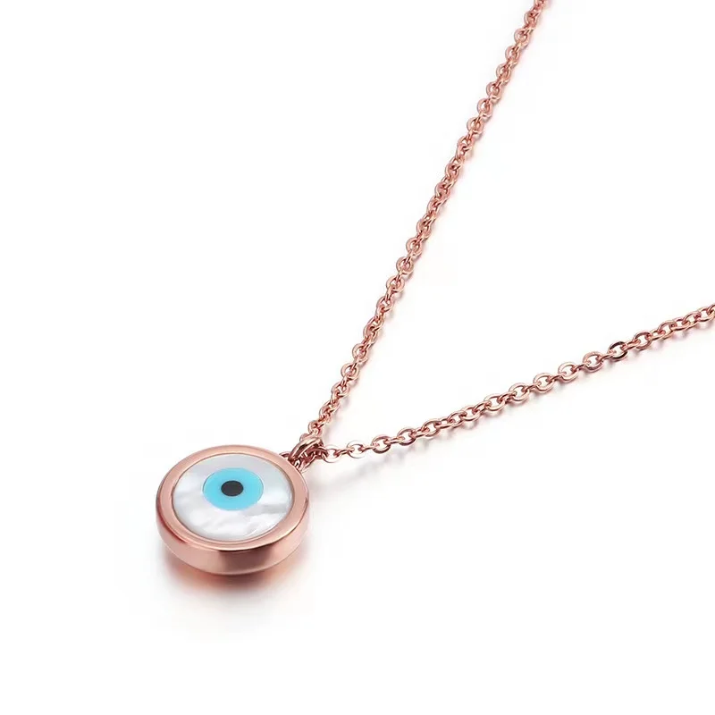 Ожерелье с круглой подвеской в форме глаза из нержавеющей стали, цепочка цвета розового золота и серебра, ожерелье в форме глаза, ювелирные изделия для женщин