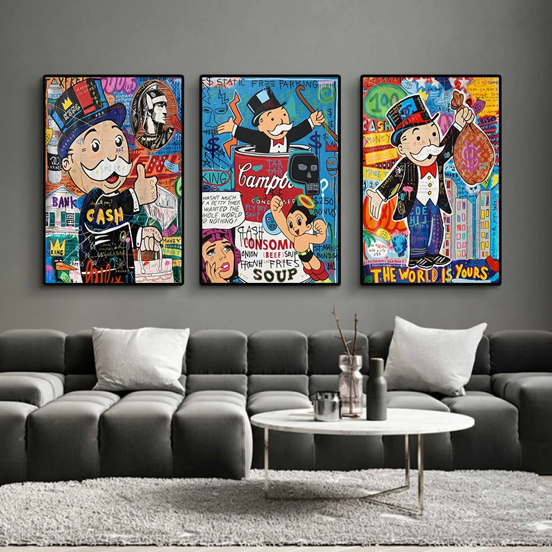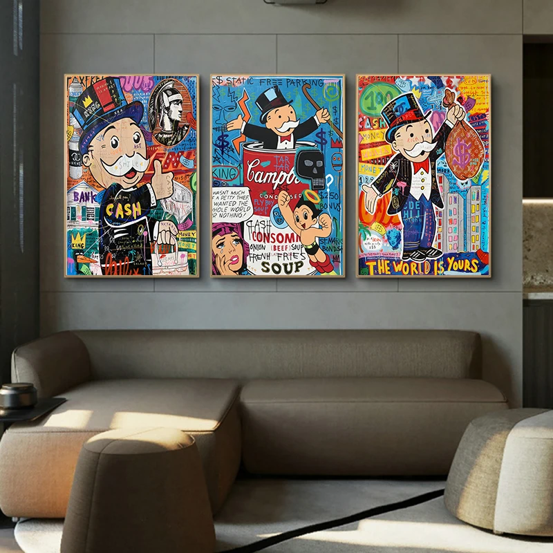 Граффити искусство Alec Монополия мир-ваш холст картина стены художественные плакаты и принты Современная гостиная домашний Декор картина