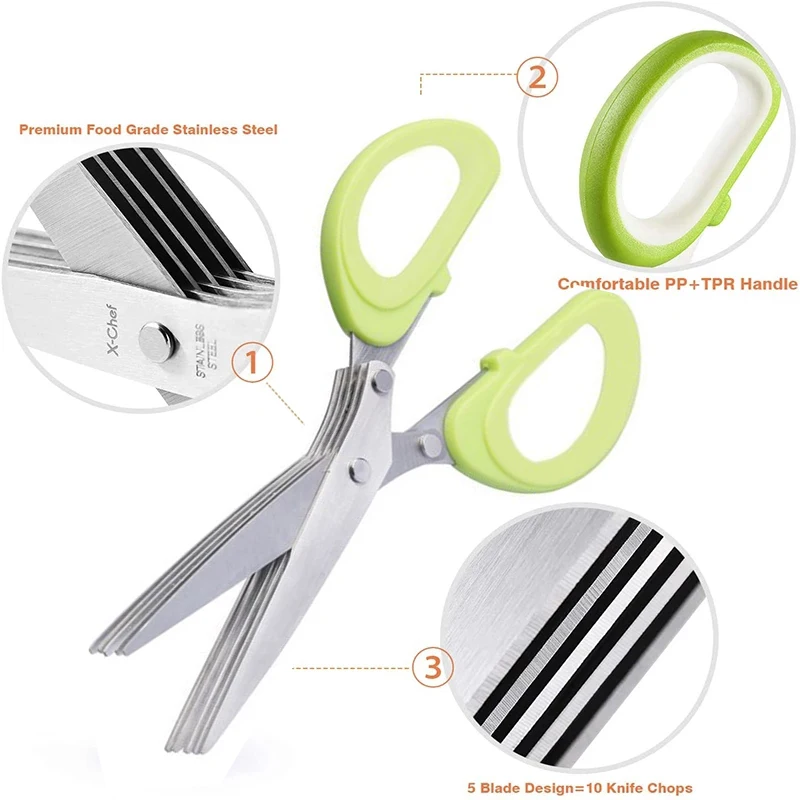 Универсальный-Многофункциональные 3 лопатки/5 лезвий ножницы для резки трав легко использовать для резки свежих трав, мяты, розмарина, шалфея, кинзы, петрушки, базилика и т. Д.