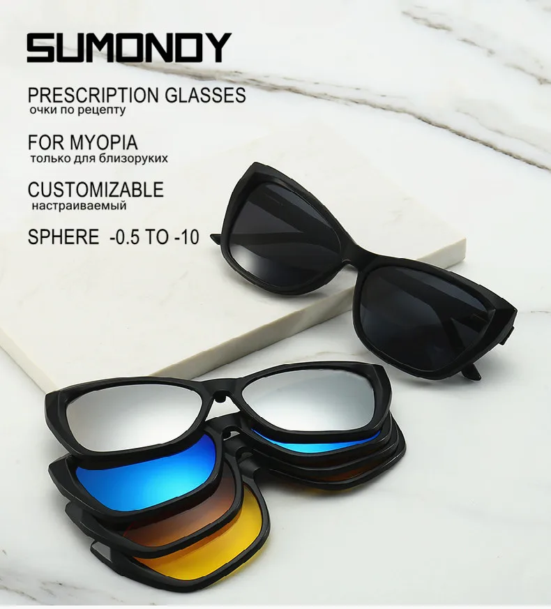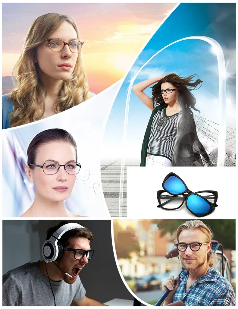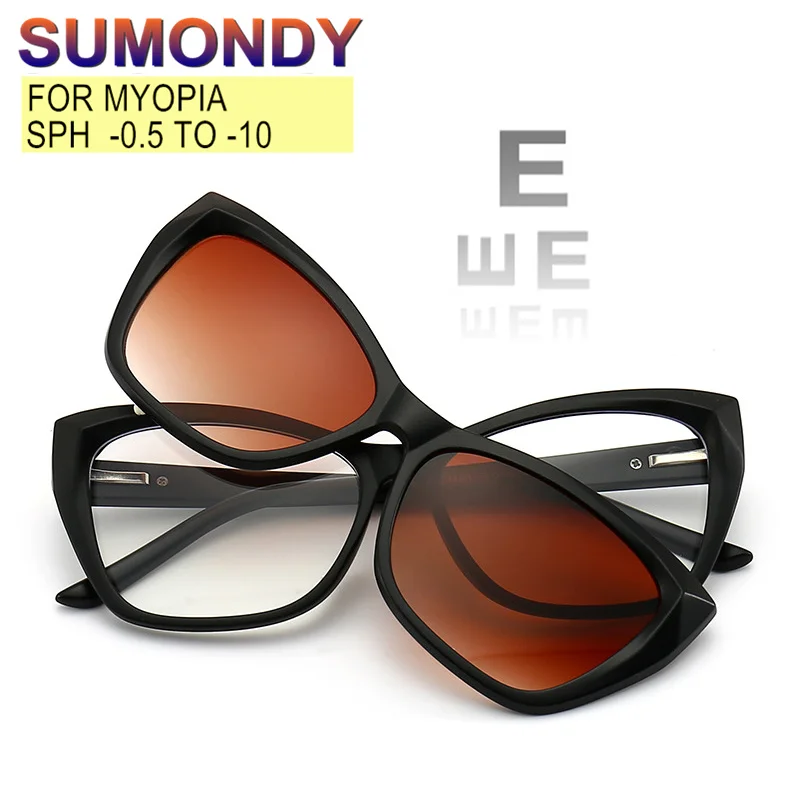 Солнцезащитные очки кошачий глаз с магнитной застежкой и очки близорукость от-0.5 до-10 для мужчин и женщин, компьютерные очки с защитой от синего света UF162